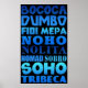 NYC acrônimos / portmanteaus, design de tipografia. É como uma linguagem completamente diferente - BOCOCA, DUMBO, FIDI, MEPA, NOHO, NOLITA, SOBRO, SOHO, TRIBECA. Ame-os, ou odeie-os, esses nomes de vizinhança continuam aparecendo na Grande Maçã.