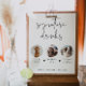 Esta placa de bebida de assinatura possui dois slots de fotos, uma fonte escura e manuscrita, e uma design moderna minimalista. Altere facilmente a fonte e a cor de fundo para corresponder ao seu evento. Esta placa é perfeita para adicionar uma foto da noiva e do noivo, crianças, ou seus animais favoritos.