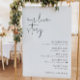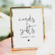 Este cartaz e sinal de presentes apresenta uma fonte bem escondido, escrita à mão, e um design moderno minimalista. Seu simples design preto e branco o torna perfeito para qualquer ocasião. Altere facilmente as cores e edite o texto *maioria* para atender às necessidades da sua ocasião. Este sinal é perfeito para o seu minimalista, elegante ou casamento no inverno ou evento.