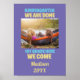 Adicione a sua foto a este poster de graduação roxo, azul e amarelo para o formando do jardim de infância que diz "Jardim de Infância Estamos Concluídos, Primeiro Grau Aqui Vimos" Último dia do jardim de infância para seu menino ou menina bonitinho. Eles estão indo para a rua! Você pode personalizar a frente com seu nome e ano e adicionar sua foto.