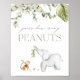 Sinais 8x10 enquadráveis para o seu jogo de chá de fraldas "adivinhem quantos amendoins" apresenta boas ilustrações aquáticas de um elefante e um macaco contando amendoins, com várias folhas de eucalipto e verde da selva tropical no topo.