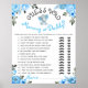 Rustic Blue Floral Boy Elephant Guess Quem Mamãe ou Pai responde a divertida placa de Poster de jogo com fundo de madeira e flores azuis de aquarela com texto totalmente personalizável.