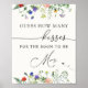 Adivinhe quantos beijos para a em breve Sra. Sinal com uma borda de flores silvestres e folhagens. Correspondendo à coleção Campos de Flores Silvestres e Abelhas Melíferas na loja Adore Paper Co. Zazzle.