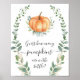 Este chá de fraldas imagina quantas abóboras estão no poster da garrafa apresenta uma abóbora aquarela e cai na camada verde dourada.
