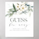 Peça aos seus hóspedes que adivinhem quantos doces estão na jarra por sua chance de ganhar um prêmio! Este design é totalmente personalizável e apresenta uma folhagem impressionante e uma bela combinação de serifa e tipografia cursiva.