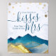"Adivinhem Quantos Beijos para a futura Sr. & Sra." Moderna Vintage Elegante Chá / Chá de panela Jogo Sinais Modelo - Verde Azul e Cinza Ouro Falso Montanhas Watercolor Paisagem. Estas Designs Podem Ser Personalizadas Para A Sua Ocasião Especial E Seriam Perfeitas Para O Seu Casamento, Chá de panela, Festa de noivado, Festa de aniversário E Muitas Outras Ocasiões Especiais.
