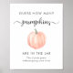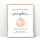 Um bom sinal de jogo neutro em relação ao gênero para o seu chá de fraldas de outono com "Adivinha quantas abóboras", escrito como tipografia de cinza simples, e um roteiro de na moda com baloiços e uma cor d'água laranja da abóbora. Coloque um frasco cheio de abóboras doces embaixo e peça aos seus hóspedes para adivinhar quantos estão no frasco. O vencedor será o convidado que se aproximar mais sem passar. Os cartões de palpite correspondentes estão disponíveis na nossa doce coleção de Chás de fraldas de Abóbora Pequena.