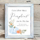Um sinal de jogo bonito para o seu chá de bebê com "Adivinhem Quantos Pumpkins" escreveu a tipografia simples de cinza e um roteiro de na moda com um inchaço cardíaco e uma aquarela de uma abóbora azul pastel, flores e verde. Coloque um frasco cheio de abóboras doces embaixo e peça aos seus hóspedes para adivinhar quantos estão no frasco. O vencedor será o convidado que se aproximar mais sem passar. Os cartões de palpite correspondentes estão disponíveis na nossa Coleção de Chás Blue Pumpkin Floral Watercolor Baby Boy.