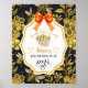 Um design elegante com abelhas e flores douradas e um arco de coquetes laranja.