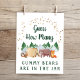 Um sinal de jogo bonito para o seu chá de fraldas com "Adivinha Quantos Ursos Gengivas Estão No Jar" escrito em tipografia rústica e um roteiro verde da floresta e uma ilustração aquarela de animais da floresta com suas tendas acampando nas montanhas e na floresta sob um céu de estrelas douradas. Coloque um frasco cheio de ursos brilhantes por baixo e peça aos seus hóspedes para adivinhar quantos estão no frasco. O vencedor será o convidado que se aproximar mais sem passar. Os cartões de palpite correspondentes estão disponíveis na nossa Aventura Aguarda a Coleção de Chás de fraldas de Animais da Floresta.