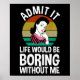 Admita - A vida seria chata sem mim. Este acessório de citação sarcástica retrógrada e engraçada faz um presente excelente para homens, mulheres, adolescentes e crianças que fazem a vida excitante e divertida. Engraçado dizer design para qualquer um que ama se meter em desgraça com seus amigos, gosta de ir a uma festa e se meter em problemas juntos. Perfeito para qualquer um com senso de humor. Possui uma mulher inocente que se põe contra um pôr do sol angustiado.