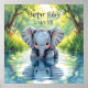 This poster has a cute watercolor cartoon chibi ai illustration of a baby elephant drinking out of a lake while looking at his own reflection. Adorable for a child's bedroom or baby nursery. You can add child's name and birthday in the personalize area.