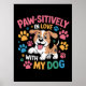 Este gráfico encantador apresenta um filhote de desenho branco, marrom e feliz com um pequeno ponto preto, sorrindo amplamente com a língua para fora enquanto deitado para baixo. O texto ousado, multicolorido, diz brincalhão, "PAW-SITIVELY IN LOVE WITH MY DOG", acentuado por inúmeras impressões coloridas em amarelo, azul e rosa. A design é colocada contra um fundo negro sólido, aumentando o seu apelo vibrante. Download digital apenas para uso pessoal.
