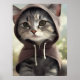 Um gatinho cinza adorável vestindo um capuz de cinza