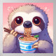 Poster Adorável Sloth Eating Ramen