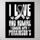 Esta engraçada percepção da doença de Parkinsons mês de apoio à design mostra que eu amo e admiro alguém com parkinsons. Perfeito para cuidadores de demência que amam sensibilizar para a Doença de Parkinsons para vovó e vovô ou mãe e Pai. . O design apresenta uma banda de fita prateada.
