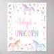 Este sinal adorável será um excelente adicional para a sua festa. Este design apresenta unicórnios de aquarela pintados manualmente e flores em cores pastel.