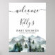 Adventure Wilderness Chá de fraldas Sinal de Boas-vindas Esta aventura ou natureza temática chá de fraldas sinal de boas-vindas apresenta uma cena de natureza aquosa atmosférica com pinheiros e montanhas. Excelente para um inverno ou chá de fraldas temático de aventura neutro em relação ao gênero ou a um menino.