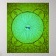 Esta é uma das primeiras afirmações mandalas que fiz, esta em 1990. Esta é feita manualmente, sem assistência ao computador, além da digitalização e do aprimoramento de cores. [Foi desbotado de estar na parede todos aqueles anos atrás.] As letras sânscrito no centro dizem "Om Mani Padme Hum", um dos mais amados mantras.