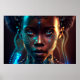 Retrato de arte digital de uma linda jovem negra com olhos azuis e detalhes ciberpunk. Este é outro design de 100% original de Hamster de Combate.