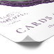Nem todos os designs de casamento são criados iguais. Os layouts assimétricos para as peças neste impressionante conjunto de casamento provam que isso não é ruim! Bandas de cor onduladas em tons contrastantes de roxo violeta e verde com um centro de cristal brilhando formam um sotaque geode/agate na maioria das peças do conjunto. O cartaz 'Cartões e presentes' do casamento mostrado aqui mostra o acima mais uma modelo para adicionar uma mensagem pessoal, seus nomes e data do casamento. Procure ID647 para ver todas as peças de coordenação neste conjunto.