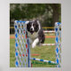 Este Border Collie salta mais alto do que o necessário nesta arte fotográfica de cão de alta qualidade. A expressão do cão é inestimável — um 'pooch' de alta velocidade! Qualquer agilidade ou amante do Border Collie vai desfrutar dessa poster em sua casa ou escritório.