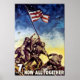 7 da Segunda Guerra Mundial de Vintage mostrando a imagem icônica da bandeira erguida em Iwo Jima, por Cecil Calvert Beall, 1945.