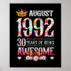 Poster Agosto De 1992 aniversário de 30 anos 30 Anos Incr