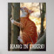 O poster de encorajamento de Gatos mostra um gato amarelo agarrado a uma árvore com "Aguente aí" numa fonte divertida.