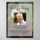 O pôster memorial perfeito para cumprimentar familiares e amigos ao entrarem na celebração da vida de seu ente querido. O design apresenta uma foto pessoal quadrada, 5 linhas de texto personalizado e uma foto de fundo de uma cena natural com uma Águia. Você pode facilmente trocá-la por uma foto de fundo própria. Clássico, porém único - este modelo é muito fácil de personalizar e também fará um maravilhoso souvenir memorial.