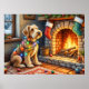 Poster Airedale Terrier Fireplace Christmas Lights
