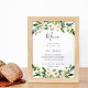 O carinhoso cartaz do menu de casamento mostra suas seleções de janto em caligrafia manuscrita e cartazes modernas de blocos. Adornada com vegetação botânica aquática e flores brancas que combinam com a nossa coleção de casamento Alabastro Floral.