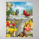 Primavera está no ar, pois esse grupo de "Amigos do Jardim" desfruta de um momento no banho de pássaros nessa criação animadora do artista Alan Giana.