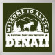 Logótipo original e a inscrição "Bem-vindo ao Alasca. Denali National Park and Preserve". Essa imagem o ajudará a guardar em memória as lembranças agradáveis sobre férias e viagem interessante. E também podemos convidar amigos para uma aventura empolgante.