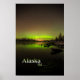 Decorado com a imagem da aurora borealis e as luzes da comunidade de Bodenburg Butte refletindo sobre o rio Knik no Alasca. Também tem texto que diz "Alaska Sigh...." Por Ted Raynor