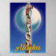 Alaska Totem Pole à noite sob o belo Poster de viagens noturno da Lua.