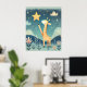 Esta trabalho de arte retrata uma cena encantadora de uma girafa chegando em direção a uma estrela brilhante e ouro contra um pano de fundo de um céu noturno estrelado. A expressão suave e longa da girafa transmite um senso de maravilha e curiosidade. A ilustração é feita em estilo macio e caprichoso, com texturas delicadas e uma paleta de cor suave, criando uma atmosfera calmante e encantadora.