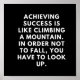 Alcançar sucesso é como escalar uma montanha. Para não cair, você tem que olhar para cima.