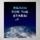 Alcance as estrelas! Uma citação motivacional clássica ou dizendo, com foto do planeta Terra do espaço, muitas estrelas no céu, fonte divertida e estrela voadora. Pense grande, confie em si mesmo e realize seus sonhos! Posters inspiradores podem melhorar seu humor e promover pensamento positivo, que é a chave para uma vida feliz. Esta arte de parede parece excelente em sala de estar, sala de família, quartos para crianças, quarto ou qualquer lugar que você queira, para motivação de inspiração e sucesso.