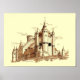 Alcazar, castelo na Espanha. Arte original de John A. Muir. Reprodução de estilhaços de caneta e tinta.