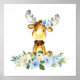 Poster Alce, Animais Da Floresta, Boho, Flores Azuis