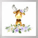 Poster Alce, Animais Da Floresta, Boho, Flores Roxas
