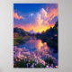 Mergulhe na beleza tranquila deste impressionante impressão de arte digital apresentando uma velha e silenciosa vila na beira de um lago sereno. O brilho cor de laranja quente do pôr do sol lança uma bela matiz rosa claro sobre a paisagem, criando um sentido de calma e serenidade.