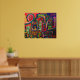 Como uma rua entre pequenas aldeias orientais, um arco-íris rodeia pequenas casas coloridas - o quadro é pintado em tons de verde e vermelho. O quadro é pintado com marcadores em madeira por Carina Rainbow, Berlim 2011.