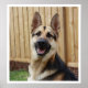 Fotografia de um cão German shepherd sentado e olhando alerta.