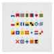 Sinalizadores de código de sinal para o transporte marítimo internacional. Estas bandeiras náuticas coloridas incluem tanto a letra como a palavra. Adequado para enquadramento!