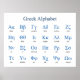 Letras gregas minúsculas e maiúsculas com seus nomes. Objeto vetorial com cores personalizadas para título, letras e nomes de letras. Cor de fundo personalizada.