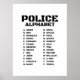 A design "Alfabeto Policial de Adam a Zebra" é uma referência única e prática ao alfabeto fonético policial, com o objetivo de aumentar a clareza comunicação. É comumente usado pela polícia para reduzir a confusão na ortografia de palavras, particularmente por telefone ou rádio. Aprender este alfabeto aumenta sua capacidade de se comunicar claramente em situações importantes.