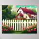 Poster Algodão com cerca branca e flores