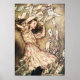 Alice no País das Maravilhas poster de Cartões Voadores. Ilustração Arthur Rackham. O artista britânico Arthur Rackham criou algumas das mais belas ilustrações para Alice de Lewis Carrol na Terra das Maravilhas. Esta ilustração é uma das mais amadas do artista e mostra Alice sendo atacada por um baralho de cartas de jogar. A menina segura as mãos em autodefesa e veste um vestido branco com rosas vermelhas. Ratos, lagartos e sapos sobem o canto da ilustração. Um presente divertido para fãs de Arthur Rackham, Alice no País das Maravilhas, Ilustração de Fantasia e Livros Clássicos.